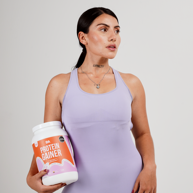 La Gainer proporciona energía limpia y la Creatina ayuda a aumentar fuerza, tono y rendimiento, mientras el colágeno cuida tu piel y articulaciones.