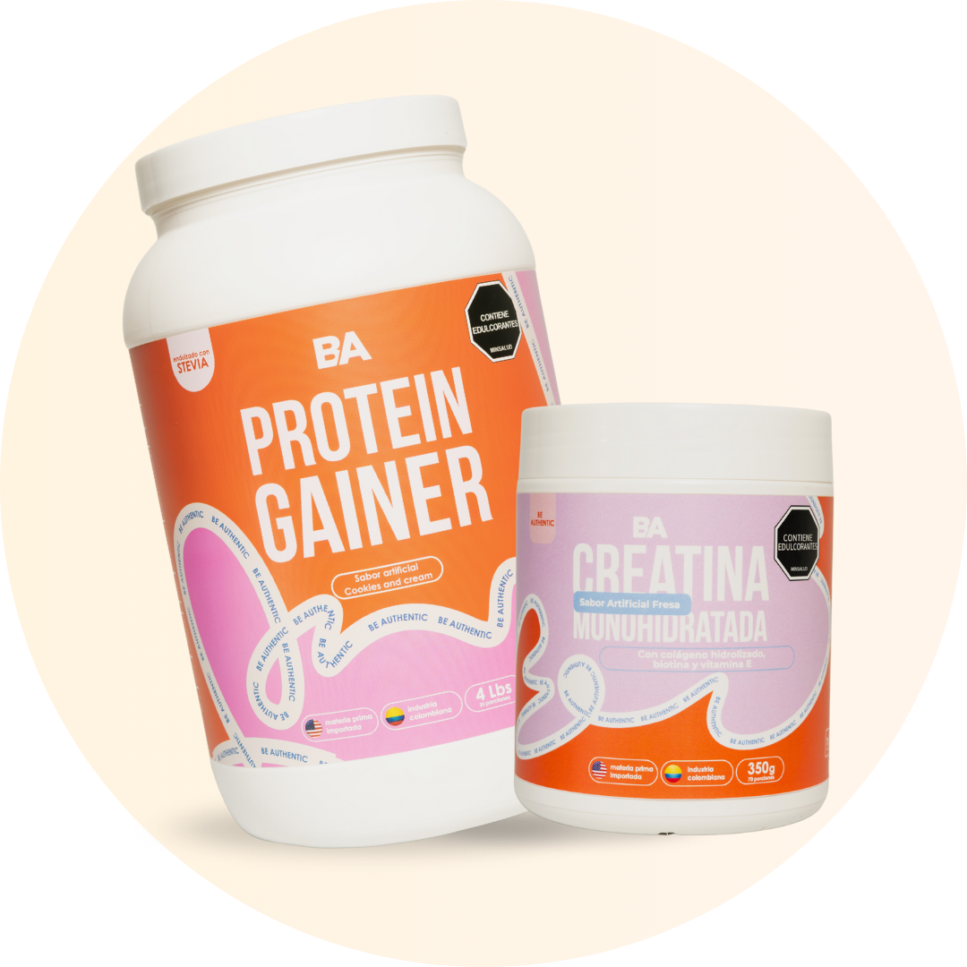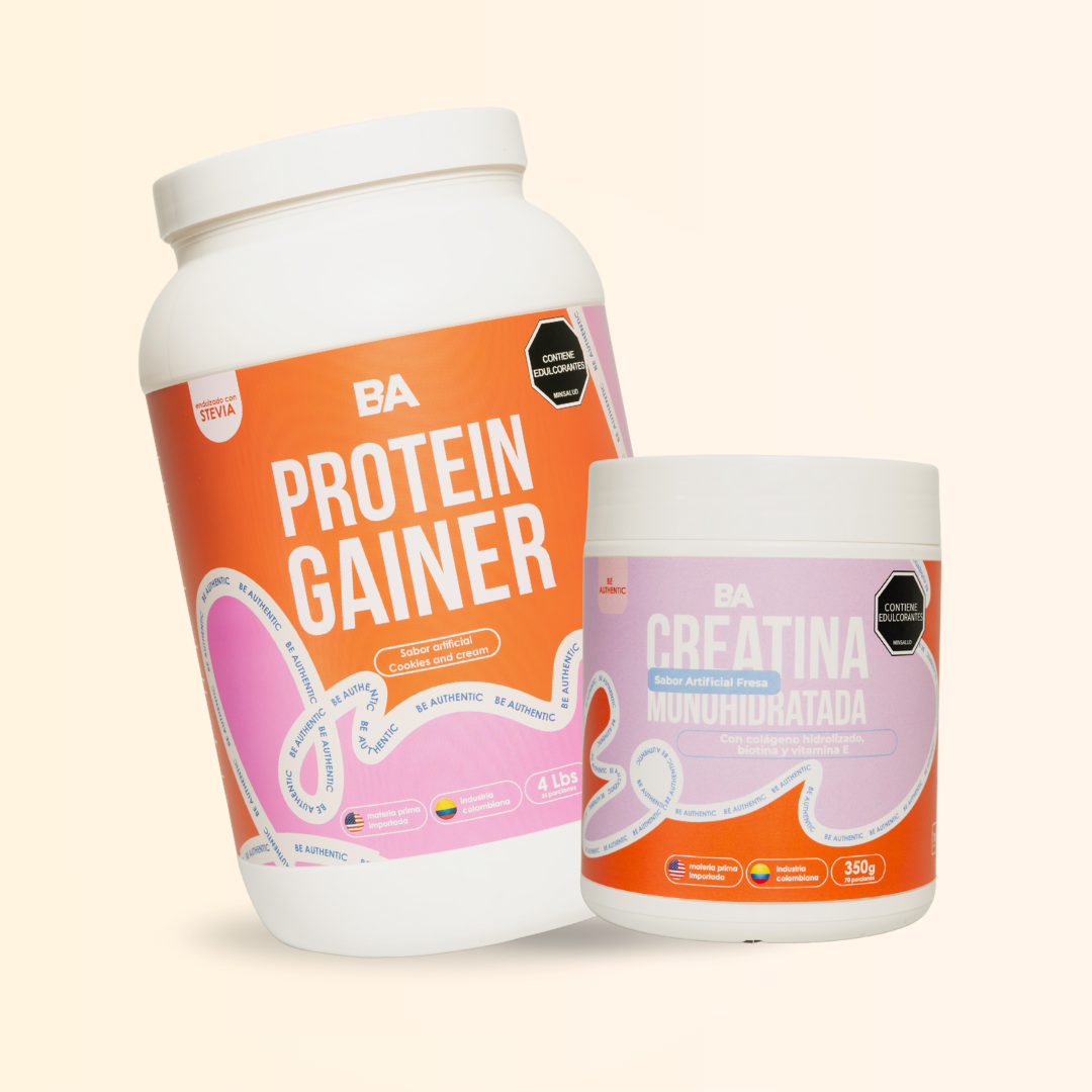 Porque combina dos fórmulas que trabajan en conjunto para generar un crecimiento equilibrado: La Gainer aporta calorías limpias para aumentar masa muscular y peso, mientras que la Creatina potencia tu fuerza, recuperación y rendimiento.
